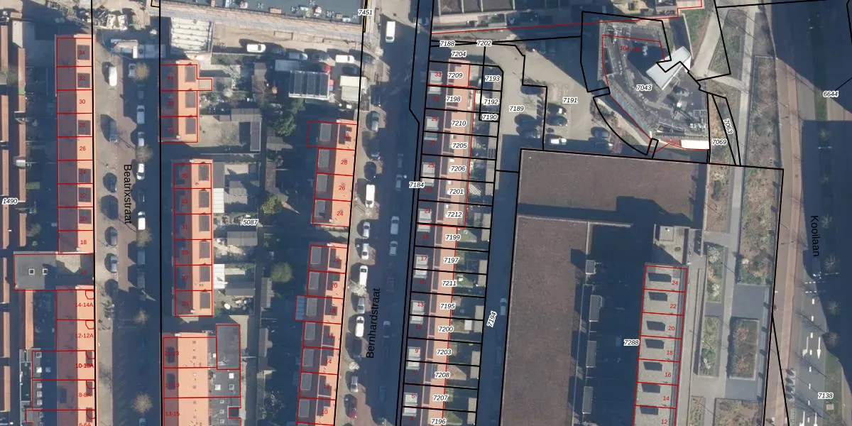 Gebruik de zoekbalk of klik op een perceel voor informatie over de adressen binnen dit perceel.