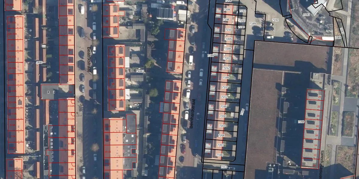 Het perceel waarop Bernhardstraat 22 staat heeft een oppervlakte van 5675 m². Dit is een zeer groot perceel. De perceeloppervlakte wordt geregistreerd door het Kadaster. Gedetailleerde informatie over de maten van dit perceel kunt u vinden in het rapport Kadastrale kaart met maatvoering van Bernhardstraat 22.