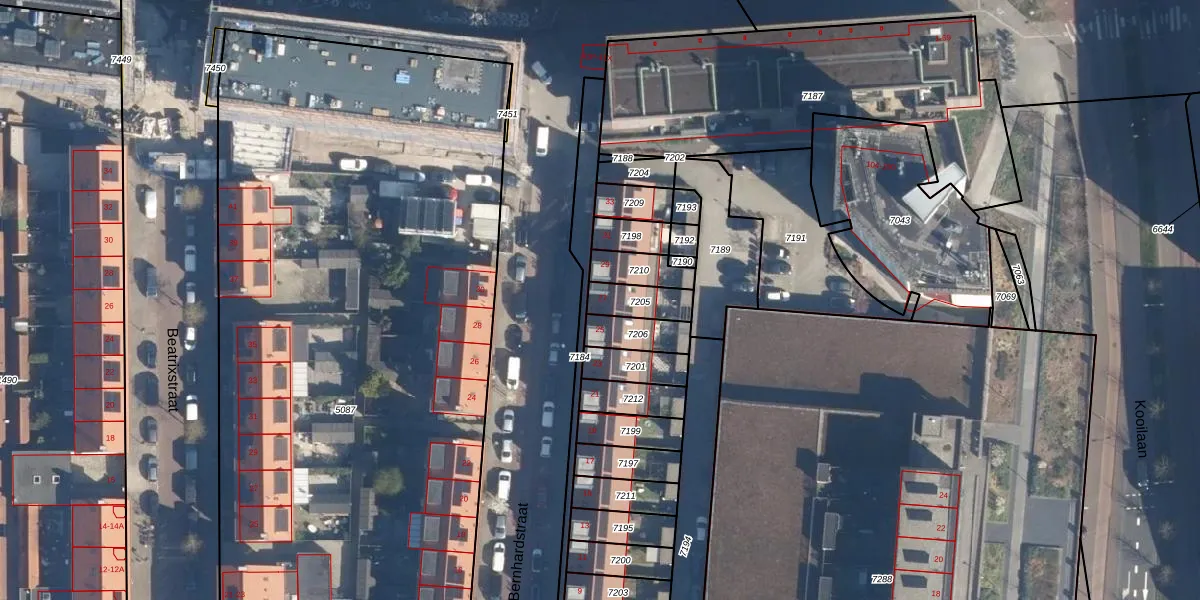 Gebruik de zoekbalk of klik op een perceel voor informatie over de adressen binnen dit perceel.