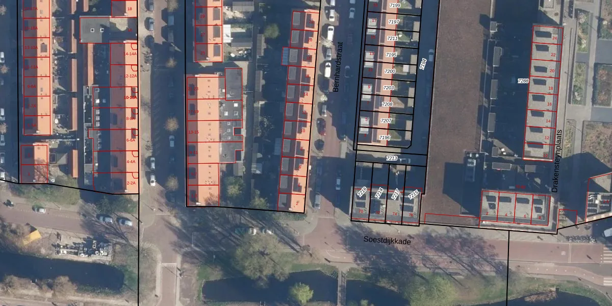 Het perceel waarop Bernhardstraat 8 staat heeft een oppervlakte van 5675 m². Dit is een zeer groot perceel. De perceeloppervlakte wordt geregistreerd door het Kadaster. Gedetailleerde informatie over de maten van dit perceel kunt u vinden in het rapport Kadastrale kaart met maatvoering van Bernhardstraat 8.