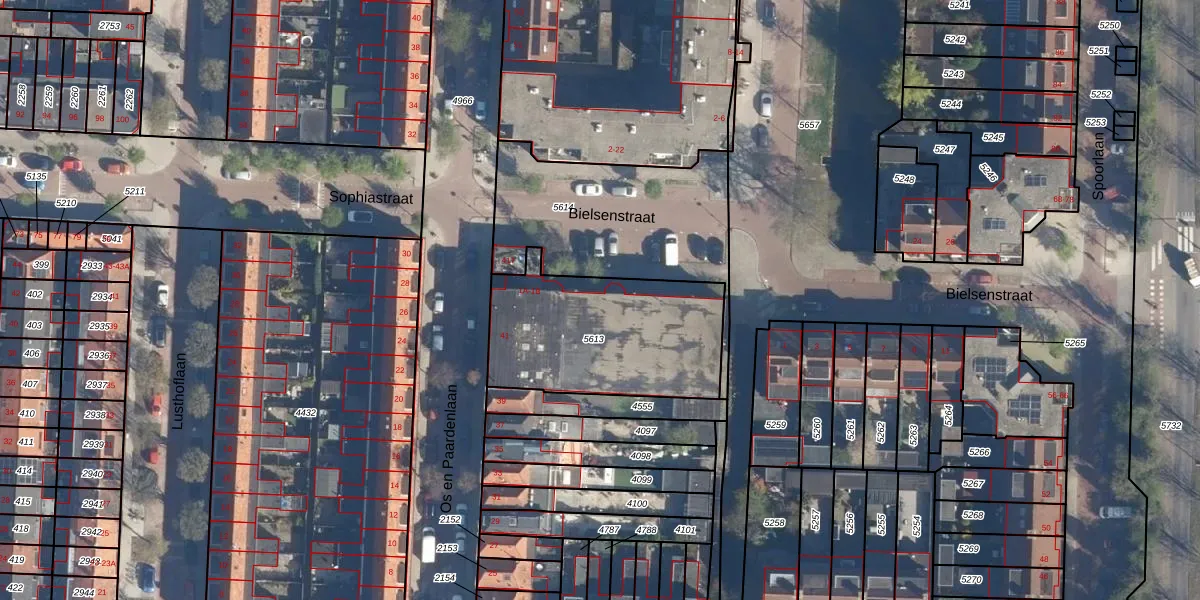 Het perceel waarop Bielsenstraat 1-A staat heeft een oppervlakte van 762 m². Dit is een groot perceel. De perceeloppervlakte wordt geregistreerd door het Kadaster. Gedetailleerde informatie over de maten van dit perceel kunt u vinden in het rapport Kadastrale kaart met maatvoering van Bielsenstraat 1-A.