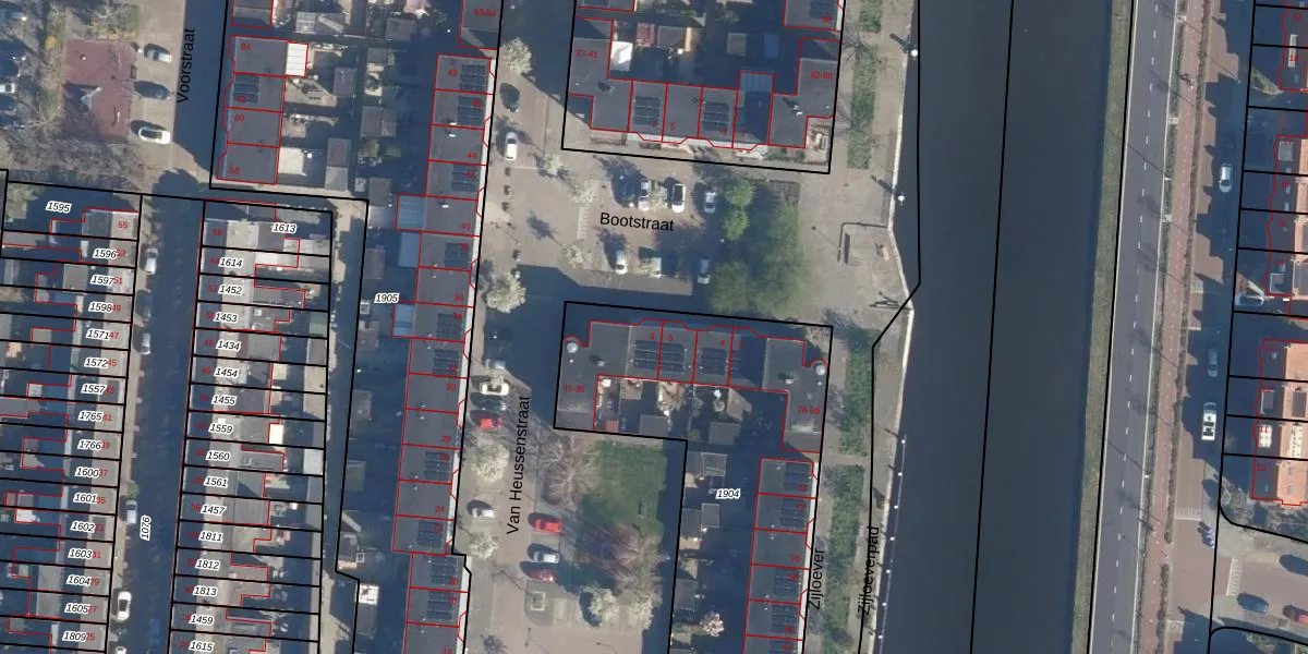 Het perceel waarop Bootstraat 8 staat heeft een oppervlakte van 1608 m². Dit is een zeer groot perceel. De perceeloppervlakte wordt geregistreerd door het Kadaster. Gedetailleerde informatie over de maten van dit perceel kunt u vinden in het rapport Kadastrale kaart met maatvoering van Bootstraat 8.
