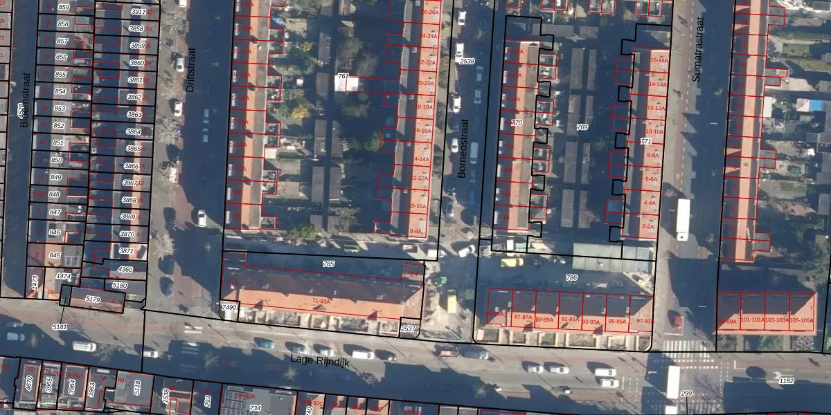 Borneostraat 10-A is gelegen op kadastraal perceel LDN01N761. Deze kadastrale aanduiding is uniek en wordt gebruikt door het Kadaster om eigendomsrechten en andere zakelijke rechten vast te leggen. Het perceel maakt onderdeel uit van de kadastrale gemeente Leiden.