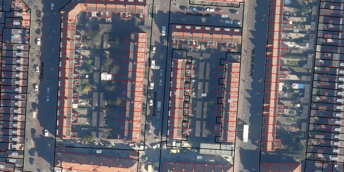 Borneostraat 11 is gelegen op kadastraal perceel LDN01N770. Deze kadastrale aanduiding is uniek en wordt gebruikt door het Kadaster om eigendomsrechten en andere zakelijke rechten vast te leggen. Het perceel maakt onderdeel uit van de kadastrale gemeente Leiden.