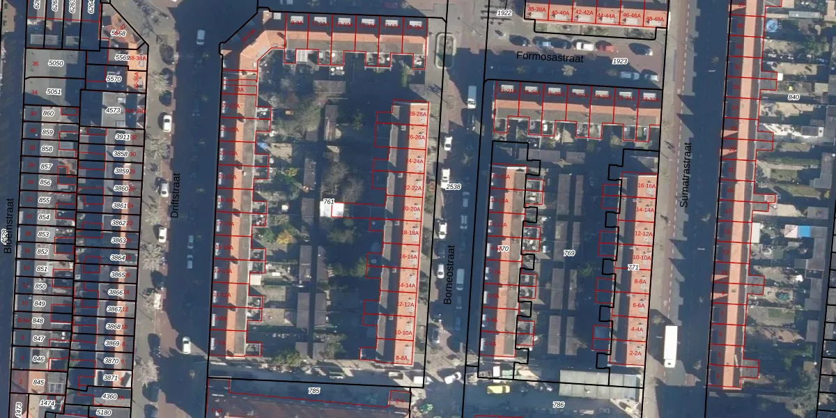 Het perceel waarop Borneostraat 20 staat heeft een oppervlakte van 4620 m². Dit is een zeer groot perceel. De perceeloppervlakte wordt geregistreerd door het Kadaster. Gedetailleerde informatie over de maten van dit perceel kunt u vinden in het rapport Kadastrale kaart met maatvoering van Borneostraat 20.