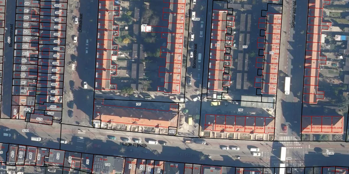 Borneostraat 8-A is gelegen op kadastraal perceel LDN01N761. Deze kadastrale aanduiding is uniek en wordt gebruikt door het Kadaster om eigendomsrechten en andere zakelijke rechten vast te leggen. Het perceel maakt onderdeel uit van de kadastrale gemeente Leiden.
