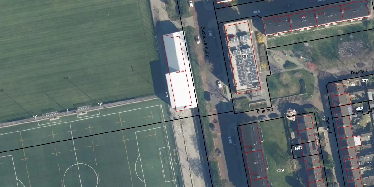 Het perceel waarop Boshuizerkade 62-H staat heeft een oppervlakte van 3,5 ha. Dit is een zeer groot perceel. De perceeloppervlakte wordt geregistreerd door het Kadaster. Gedetailleerde informatie over de maten van dit perceel kunt u vinden in het rapport Kadastrale kaart met maatvoering van Boshuizerkade 62-H.