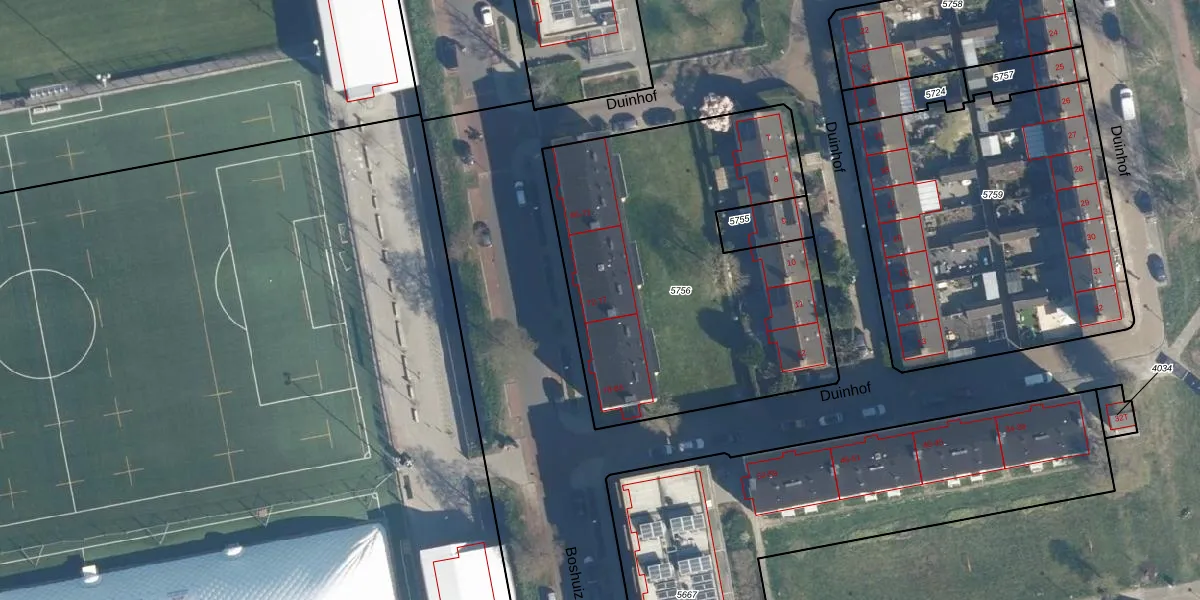 Het perceel waarop het adres ligt is LDN01-O-5756. De afkorting 'LDN01' staat voor kadastrale gemeente Leiden. Het perceel is met 1898 m² relatief groot. Het gemiddelde ligt in de kadastrale gemeente Leiden op 703,99 m². Het kleinste perceel in de kadastrale gemeente is 0 m² groot. De grootste perceeloppervlakte is 51,8 ha. Er zijn 23 adressen aanwezig op het perceel. De huidige grenzen van het perceel zijn digitaal in de Basisregistratie Kadaster (BRK) geregistreerd op 06-08-2014.