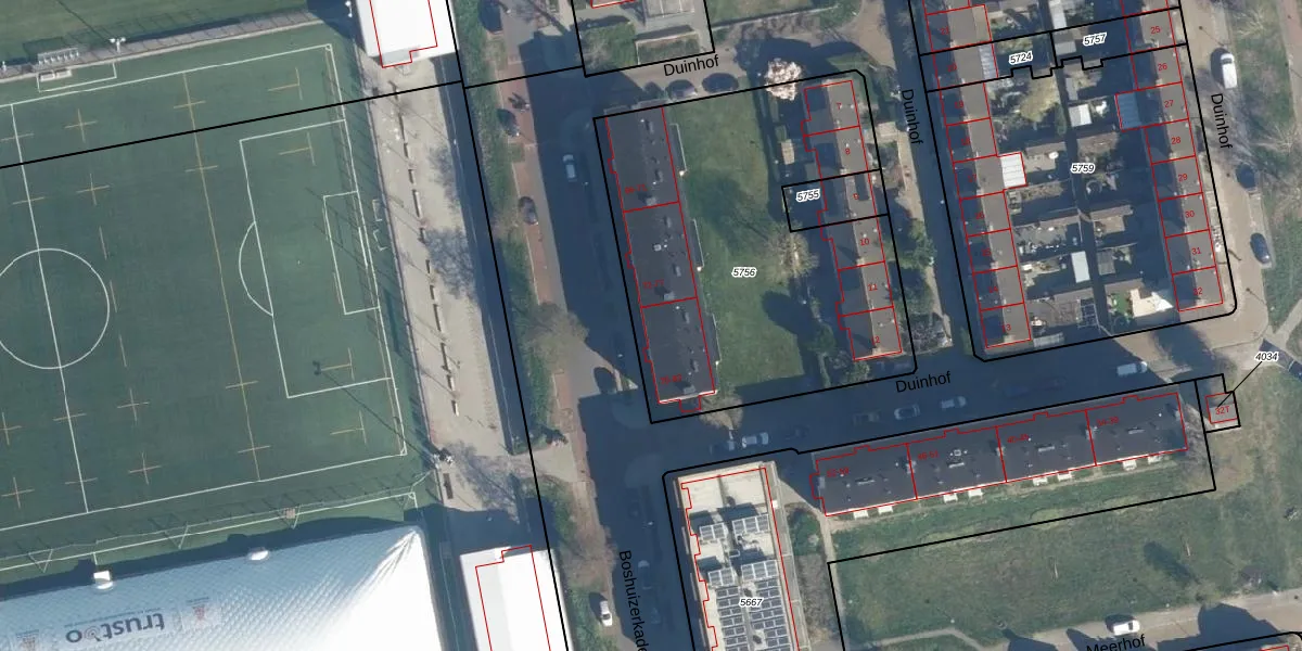 Het perceel waarop het adres ligt is LDN01-O-5756. De afkorting 'LDN01' staat voor kadastrale gemeente Leiden. Het perceel is met 1898 m² relatief groot. Het gemiddelde ligt in de kadastrale gemeente Leiden op 703,94 m². Het kleinste perceel in de kadastrale gemeente is 0 m² groot. De grootste perceeloppervlakte is 51,8 ha. Er zijn 23 adressen aanwezig op het perceel. In de Basisregistratie Kadaster (BRK) werden de grenzen van het perceel geregistreerd op 06-08-2014.
