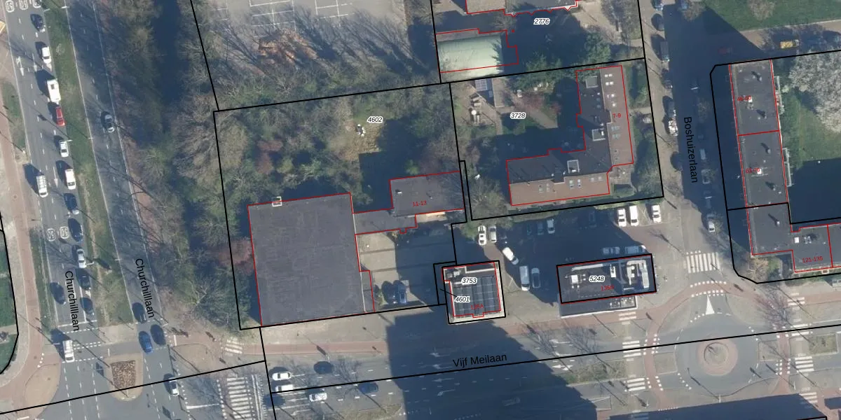 Het perceel waarop Boshuizerlaan 13 staat heeft een oppervlakte van 2835 m². Dit is een zeer groot perceel. De perceeloppervlakte wordt geregistreerd door het Kadaster. Gedetailleerde informatie over de maten van dit perceel kunt u vinden in het rapport Kadastrale kaart met maatvoering van Boshuizerlaan 13.