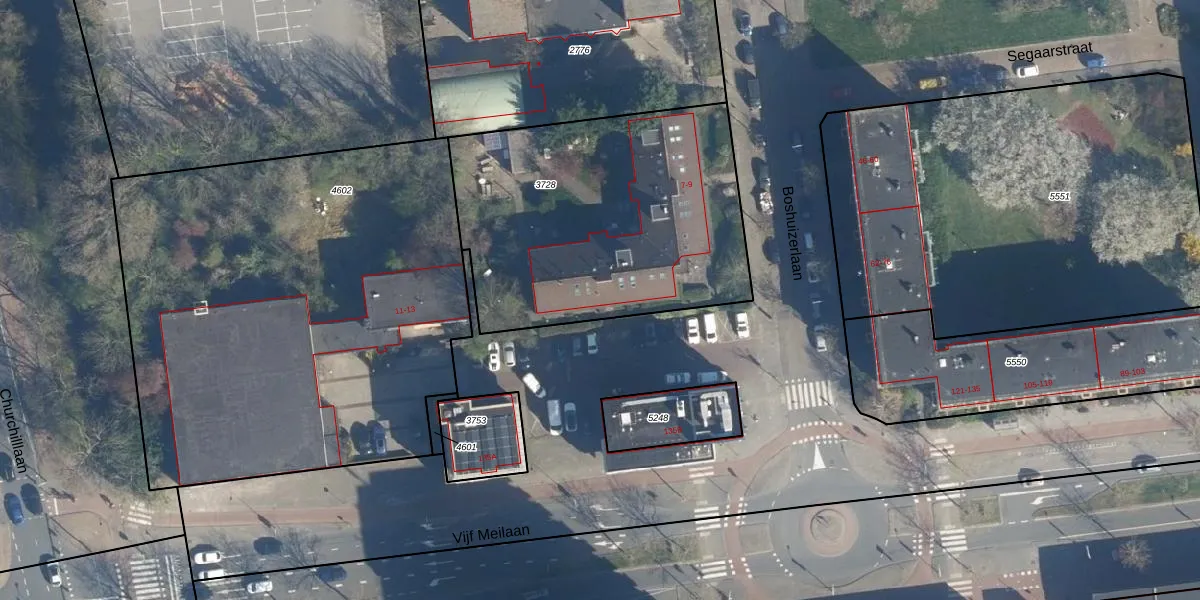 Het perceel waarop Boshuizerlaan 9 staat heeft een oppervlakte van 1540 m². Dit is een zeer groot perceel. De perceeloppervlakte wordt geregistreerd door het Kadaster. Gedetailleerde informatie over de maten van dit perceel kunt u vinden in het rapport Kadastrale kaart met maatvoering van Boshuizerlaan 9.