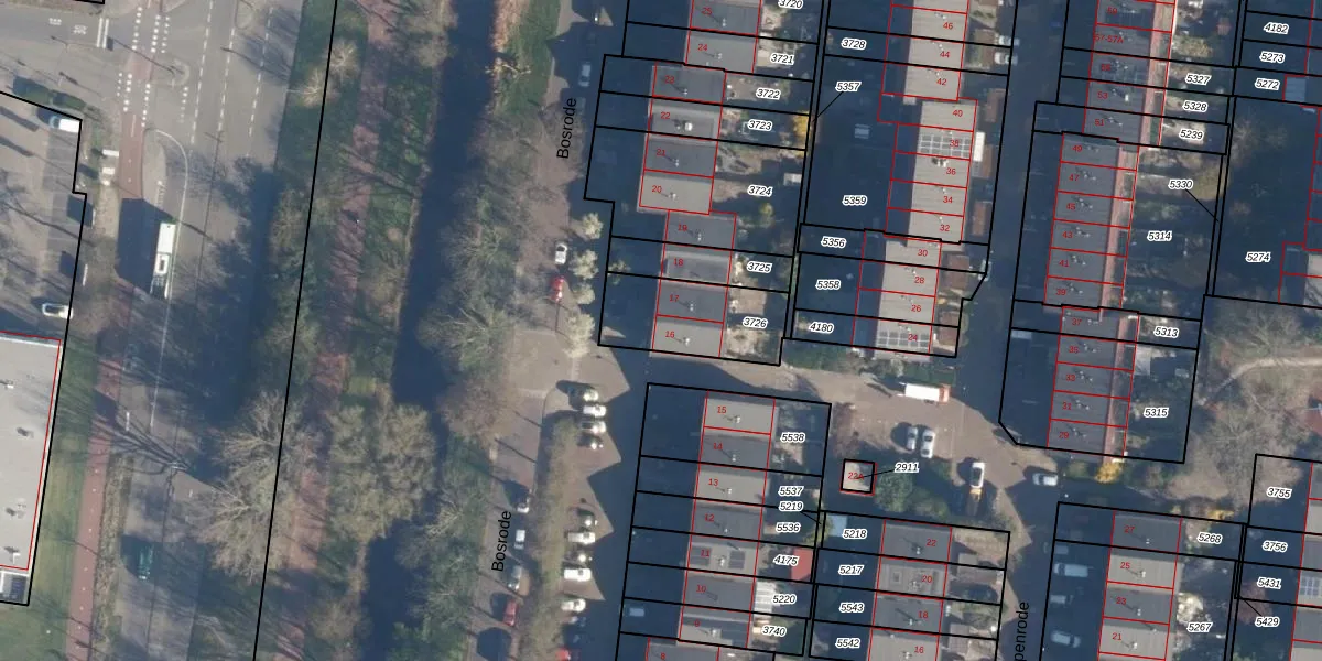 Bosrode 16 is gelegen op kadastraal perceel LDN01S3726. Deze kadastrale aanduiding is uniek en wordt gebruikt door het Kadaster om eigendomsrechten en andere zakelijke rechten vast te leggen. Het perceel maakt onderdeel uit van de kadastrale gemeente Leiden.