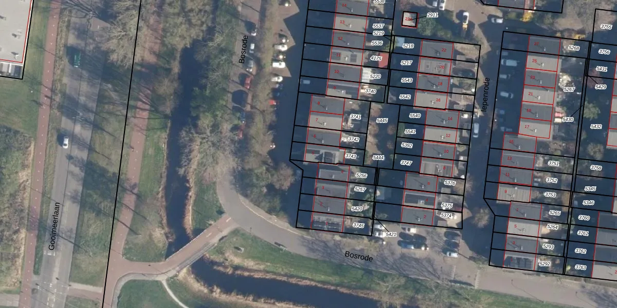 Bosrode 5 is gelegen op kadastraal perceel LDN01S3743. Deze kadastrale aanduiding is uniek en wordt gebruikt door het Kadaster om eigendomsrechten en andere zakelijke rechten vast te leggen. Het perceel maakt onderdeel uit van de kadastrale gemeente Leiden.