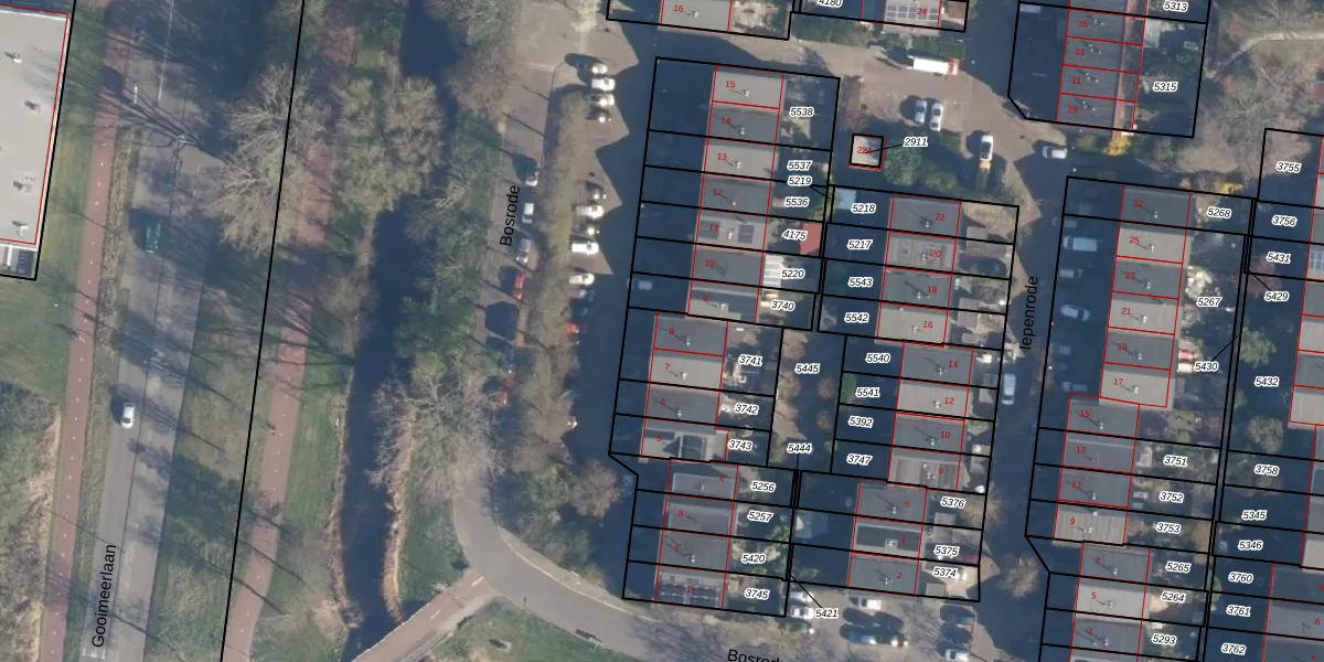 Bosrode 8 is gelegen op kadastraal perceel LDN01S3741. Deze kadastrale aanduiding is uniek en wordt gebruikt door het Kadaster om eigendomsrechten en andere zakelijke rechten vast te leggen. Het perceel maakt onderdeel uit van de kadastrale gemeente Leiden.