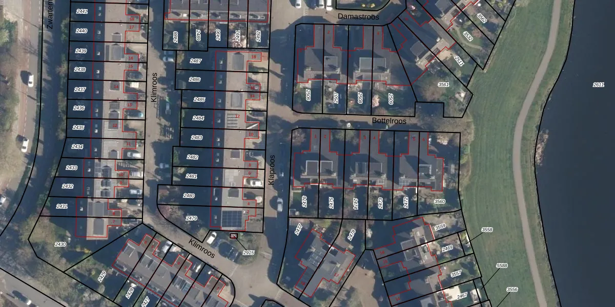 Gebruik de zoekbalk of klik op een perceel voor informatie over de adressen binnen dit perceel.