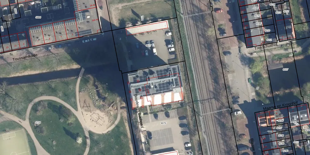Het perceel waarop Boudewijn Büchpad 21 staat heeft een oppervlakte van 2589 m². Dit is een zeer groot perceel. De perceeloppervlakte wordt geregistreerd door het Kadaster. Gedetailleerde informatie over de maten van dit perceel kunt u vinden in het rapport Kadastrale kaart met maatvoering van Boudewijn Büchpad 21.