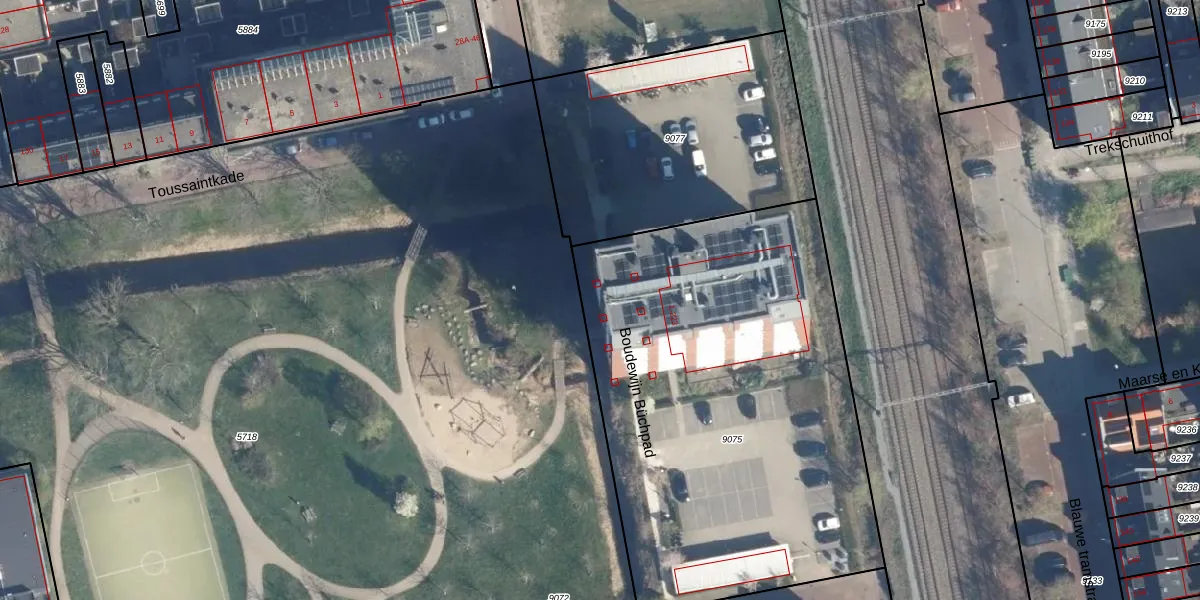 Het perceel waarop Boudewijn Büchpad 39 staat heeft een oppervlakte van 2589 m². Dit is een zeer groot perceel. De perceeloppervlakte wordt geregistreerd door het Kadaster. Gedetailleerde informatie over de maten van dit perceel kunt u vinden in het rapport Kadastrale kaart met maatvoering van Boudewijn Büchpad 39.