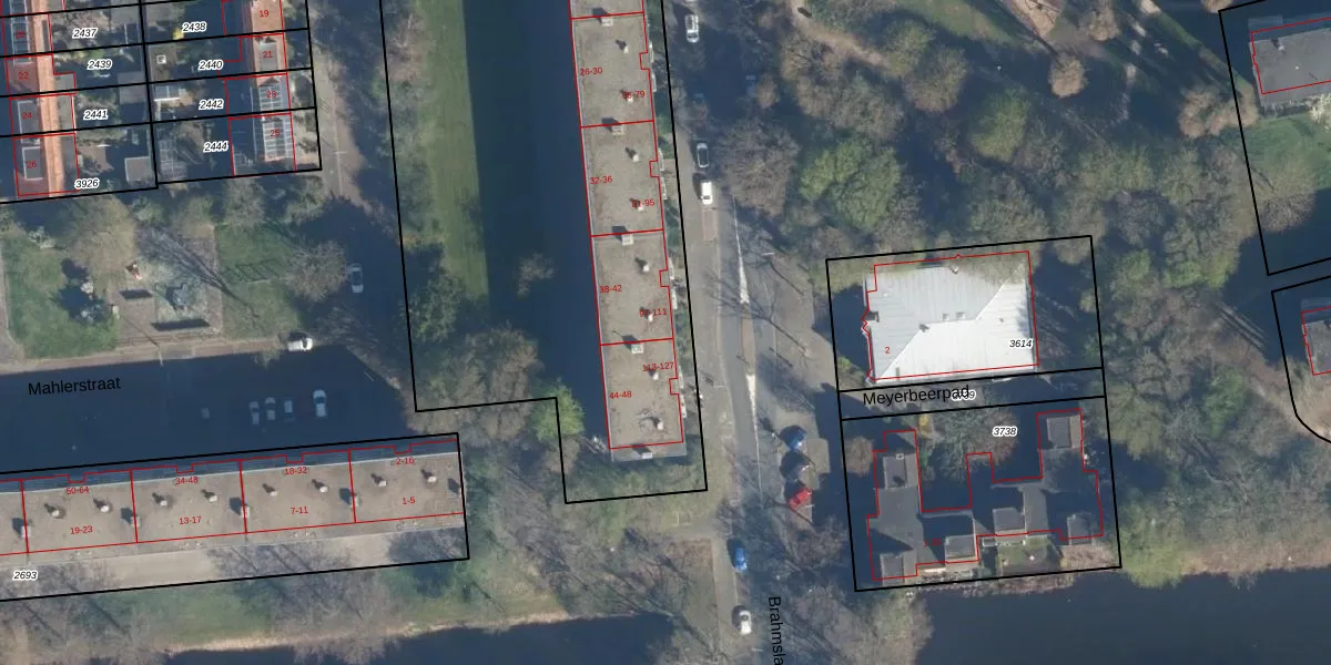 Het perceel waarop Brahmslaan 105 staat heeft een oppervlakte van 5611 m². Dit is een zeer groot perceel. De perceeloppervlakte wordt geregistreerd door het Kadaster. Gedetailleerde informatie over de maten van dit perceel kunt u vinden in het rapport Kadastrale kaart met maatvoering van Brahmslaan 105.