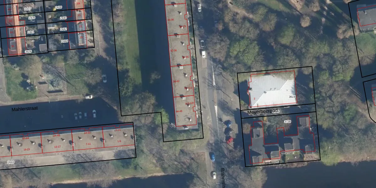 Brahmslaan 107 is gelegen op kadastraal perceel LDN01O2692. Deze kadastrale aanduiding is uniek en wordt gebruikt door het Kadaster om eigendomsrechten en andere zakelijke rechten vast te leggen. Het perceel maakt onderdeel uit van de kadastrale gemeente Leiden.