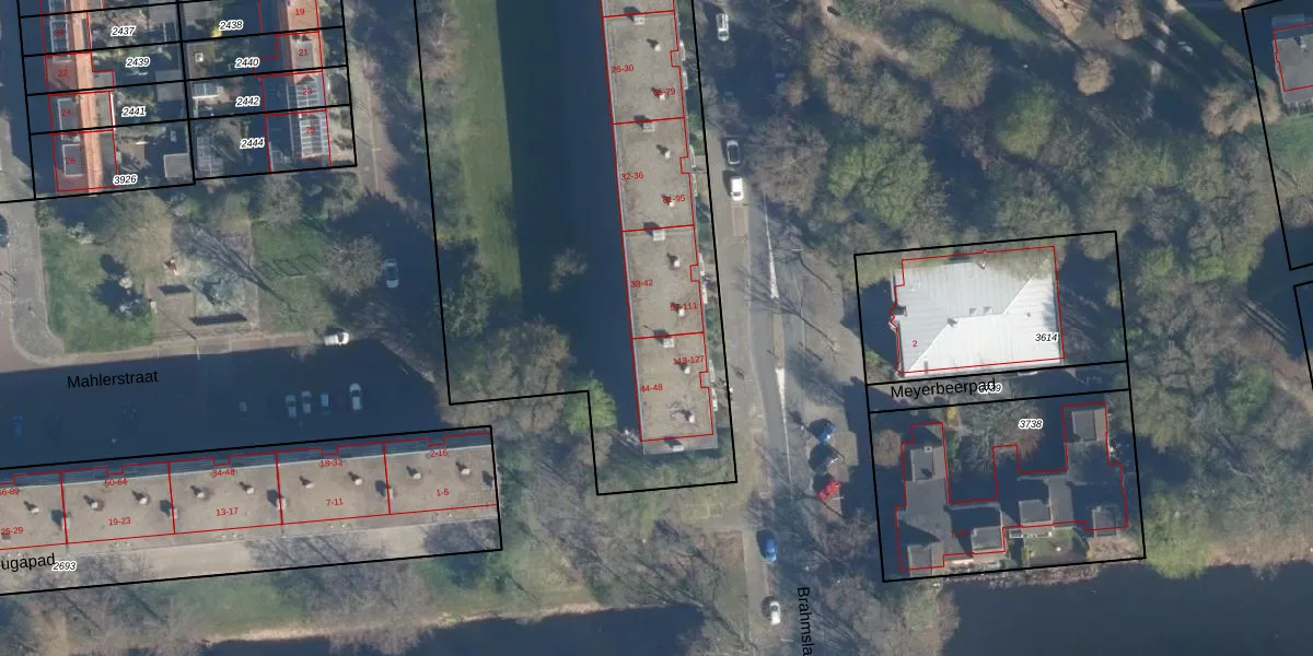 Brahmslaan 111 is gelegen op kadastraal perceel LDN01O2692. Deze kadastrale aanduiding is uniek en wordt gebruikt door het Kadaster om eigendomsrechten en andere zakelijke rechten vast te leggen. Het perceel maakt onderdeel uit van de kadastrale gemeente Leiden.