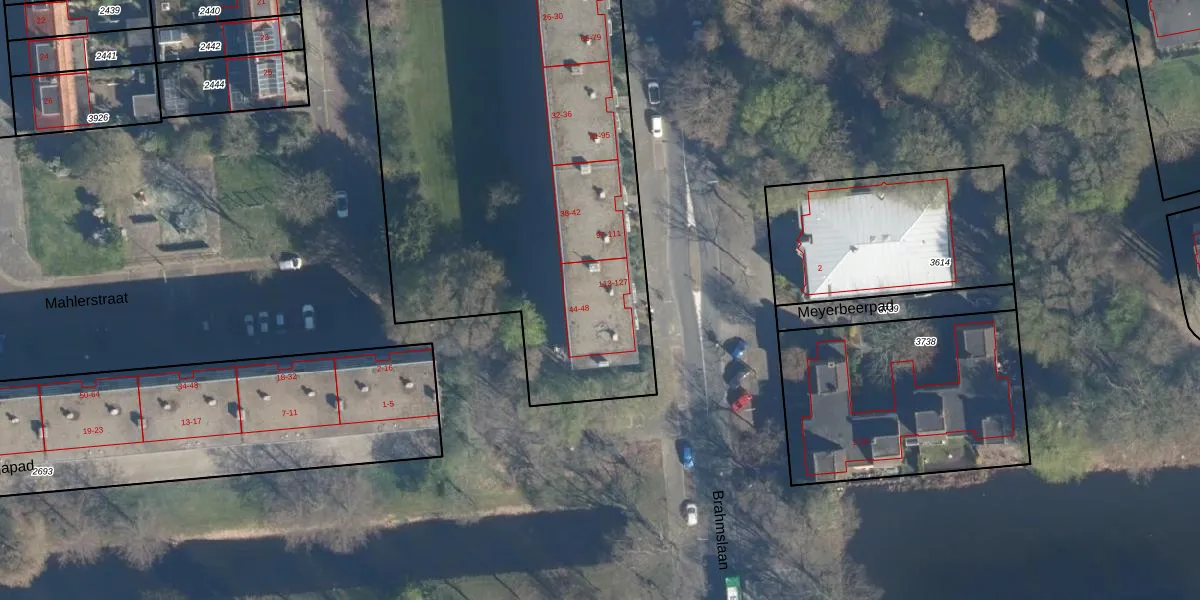 Het perceel waarop Brahmslaan 117 staat heeft een oppervlakte van 5611 m². Dit is een zeer groot perceel. De perceeloppervlakte wordt geregistreerd door het Kadaster. Gedetailleerde informatie over de maten van dit perceel kunt u vinden in het rapport Kadastrale kaart met maatvoering van Brahmslaan 117.