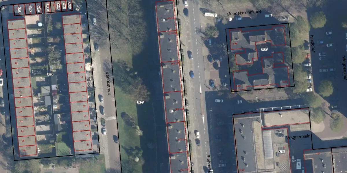 Het perceel waarop Brahmslaan 177 staat heeft een oppervlakte van 5230 m². Dit is een zeer groot perceel. De perceeloppervlakte wordt geregistreerd door het Kadaster. Gedetailleerde informatie over de maten van dit perceel kunt u vinden in het rapport Kadastrale kaart met maatvoering van Brahmslaan 177.