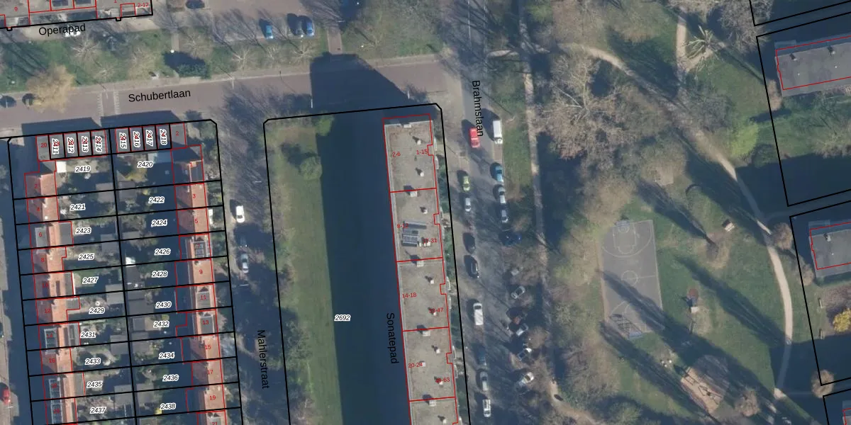 Brahmslaan 19 is gelegen op kadastraal perceel LDN01O2692. Deze kadastrale aanduiding is uniek en wordt gebruikt door het Kadaster om eigendomsrechten en andere zakelijke rechten vast te leggen. Het perceel maakt onderdeel uit van de kadastrale gemeente Leiden.