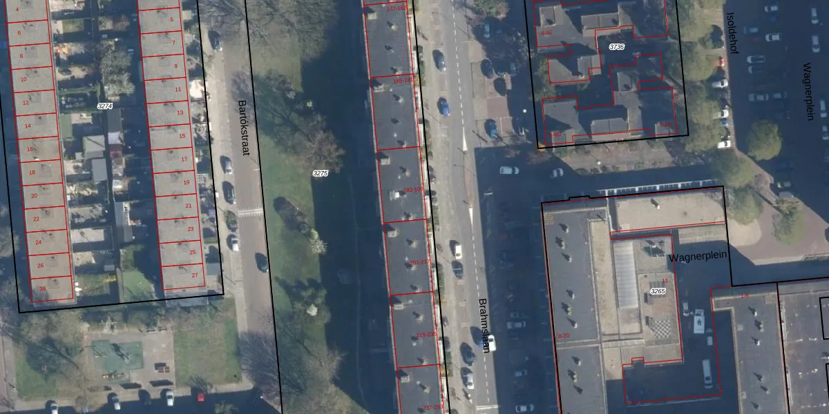 Het perceel waarop Brahmslaan 193 staat heeft een oppervlakte van 5230 m². Dit is een zeer groot perceel. De perceeloppervlakte wordt geregistreerd door het Kadaster. Gedetailleerde informatie over de maten van dit perceel kunt u vinden in het rapport Kadastrale kaart met maatvoering van Brahmslaan 193.