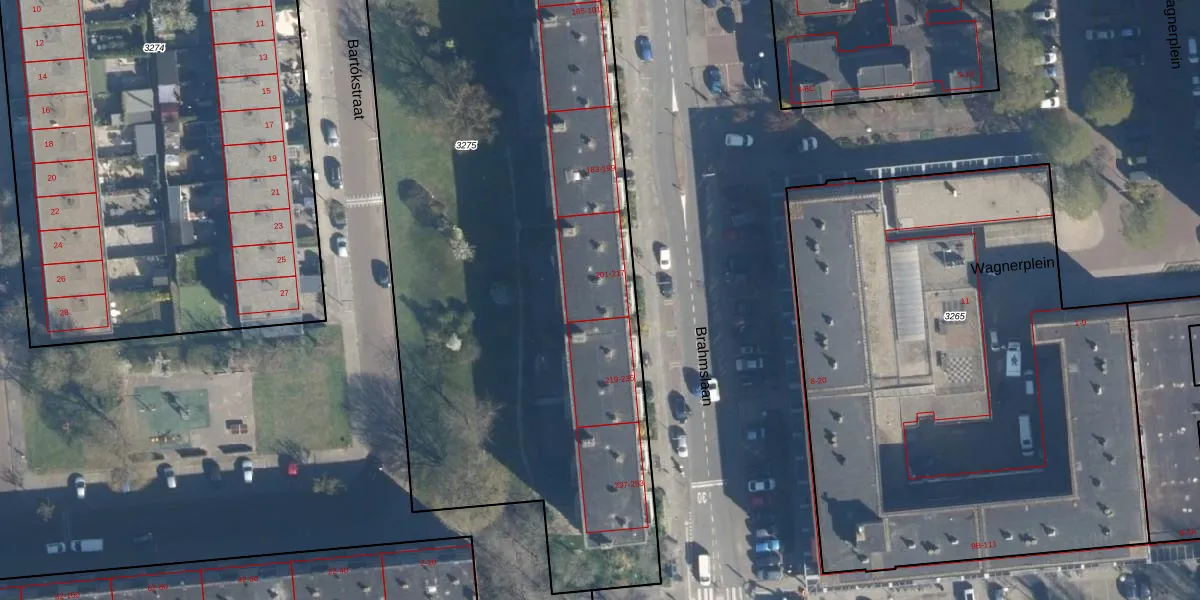 Het perceel waarop Brahmslaan 213 staat heeft een oppervlakte van 5230 m². Dit is een zeer groot perceel. De perceeloppervlakte wordt geregistreerd door het Kadaster. Gedetailleerde informatie over de maten van dit perceel kunt u vinden in het rapport Kadastrale kaart met maatvoering van Brahmslaan 213.