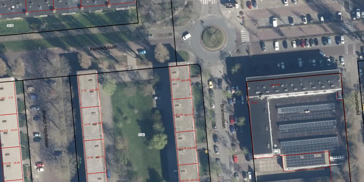 Brahmslaan 265 is gelegen op kadastraal perceel LDN01O2742. Deze kadastrale aanduiding is uniek en wordt gebruikt door het Kadaster om eigendomsrechten en andere zakelijke rechten vast te leggen. Het perceel maakt onderdeel uit van de kadastrale gemeente Leiden.