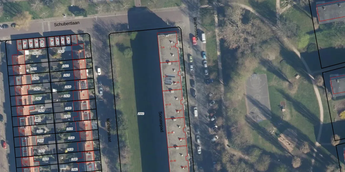 Het perceel waarop Brahmslaan 29 staat heeft een oppervlakte van 5611 m². Dit is een zeer groot perceel. De perceeloppervlakte wordt geregistreerd door het Kadaster. Gedetailleerde informatie over de maten van dit perceel kunt u vinden in het rapport Kadastrale kaart met maatvoering van Brahmslaan 29.