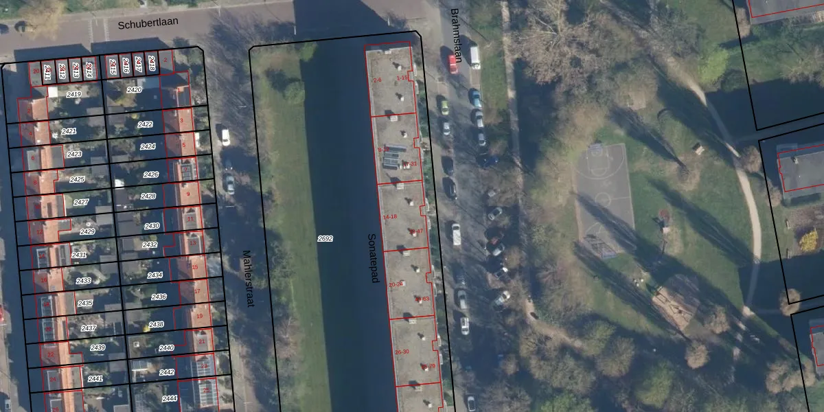 Het perceel waarop Brahmslaan 35 staat heeft een oppervlakte van 5611 m². Dit is een zeer groot perceel. De perceeloppervlakte wordt geregistreerd door het Kadaster. Gedetailleerde informatie over de maten van dit perceel kunt u vinden in het rapport Kadastrale kaart met maatvoering van Brahmslaan 35.