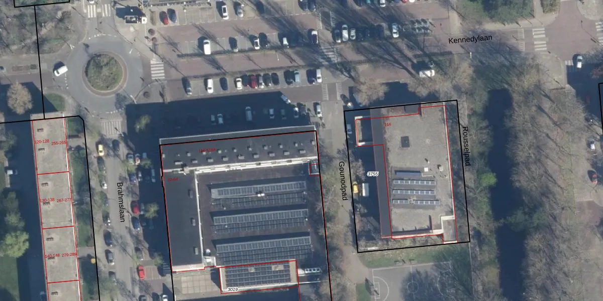 Het perceel waarop Brahmslaan 38 staat heeft een oppervlakte van 3250 m². Dit is een zeer groot perceel. De perceeloppervlakte wordt geregistreerd door het Kadaster. Gedetailleerde informatie over de maten van dit perceel kunt u vinden in het rapport Kadastrale kaart met maatvoering van Brahmslaan 38.
