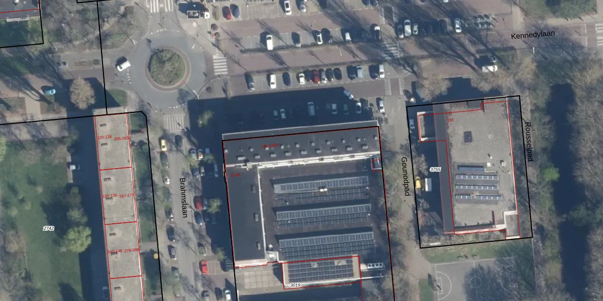 Het perceel waarop Brahmslaan 46 staat heeft een oppervlakte van 3250 m². Dit is een zeer groot perceel. De perceeloppervlakte wordt geregistreerd door het Kadaster. Gedetailleerde informatie over de maten van dit perceel kunt u vinden in het rapport Kadastrale kaart met maatvoering van Brahmslaan 46.