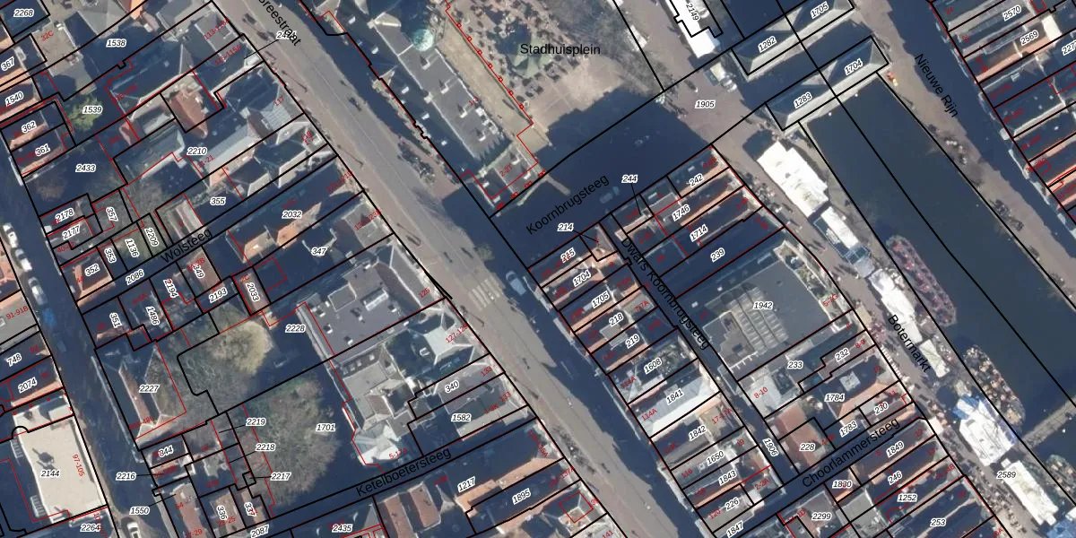 Het perceel waarop Breestraat 106 staat heeft een oppervlakte van 44 m². Dit is een klein perceel. De perceeloppervlakte wordt geregistreerd door het Kadaster. Gedetailleerde informatie over de maten van dit perceel kunt u vinden in het rapport Kadastrale kaart met maatvoering van Breestraat 106.