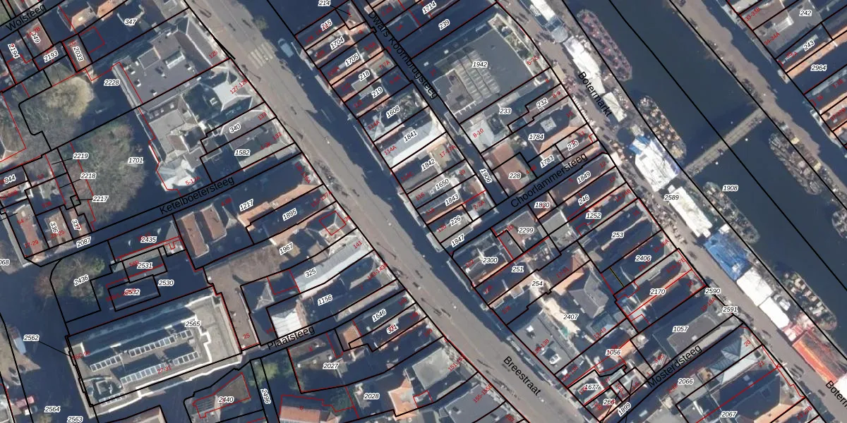 Het perceel waarop Breestraat 118 staat heeft een oppervlakte van 100 m². Dit is een middelgroot perceel. De perceeloppervlakte wordt geregistreerd door het Kadaster. Gedetailleerde informatie over de maten van dit perceel kunt u vinden in het rapport Kadastrale kaart met maatvoering van Breestraat 118.