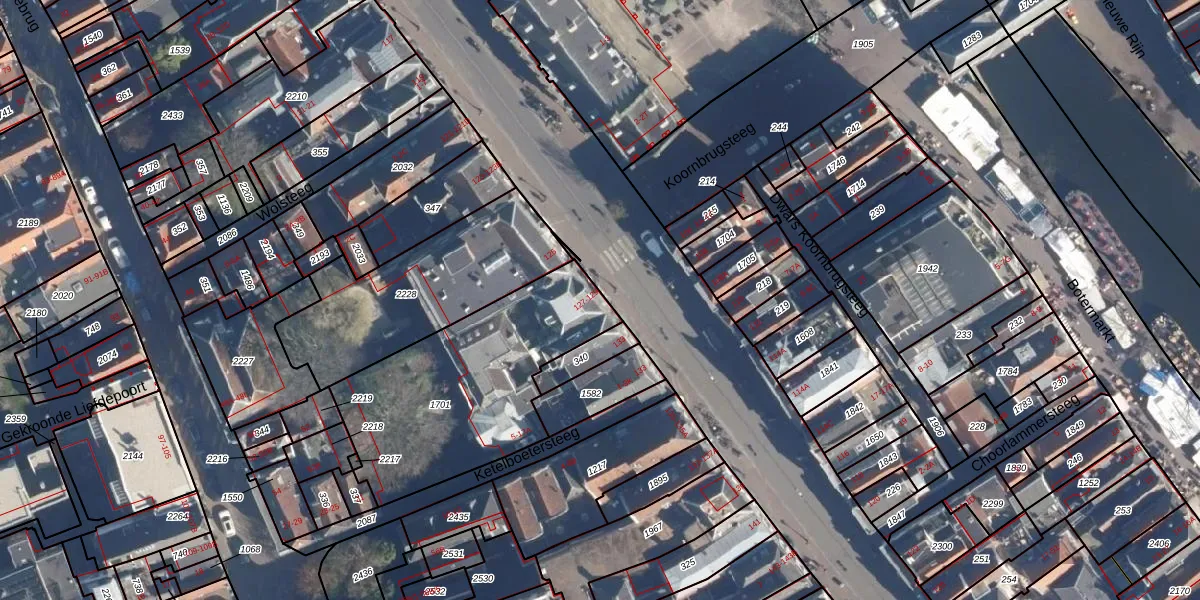 Het perceel waarop Breestraat 129 staat heeft een oppervlakte van 920 m². Dit is een groot perceel. De perceeloppervlakte wordt geregistreerd door het Kadaster. Gedetailleerde informatie over de maten van dit perceel kunt u vinden in het rapport Kadastrale kaart met maatvoering van Breestraat 129.