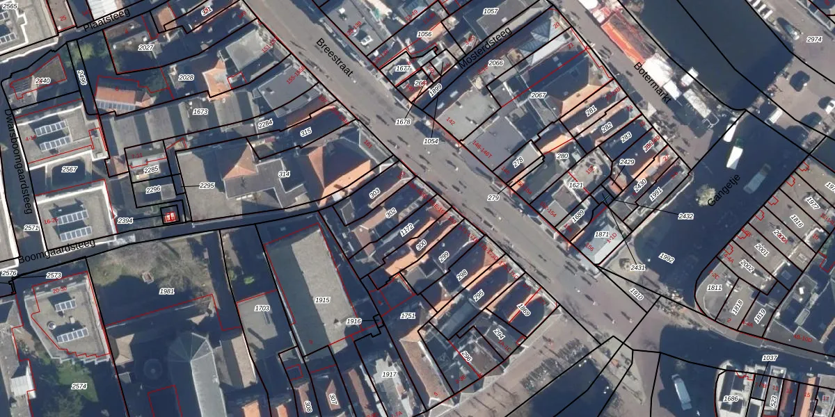 Het perceel waarop Breestraat 165-C staat heeft een oppervlakte van 189 m². Dit is een middelgroot perceel. De perceeloppervlakte wordt geregistreerd door het Kadaster. Gedetailleerde informatie over de maten van dit perceel kunt u vinden in het rapport Kadastrale kaart met maatvoering van Breestraat 165-C.