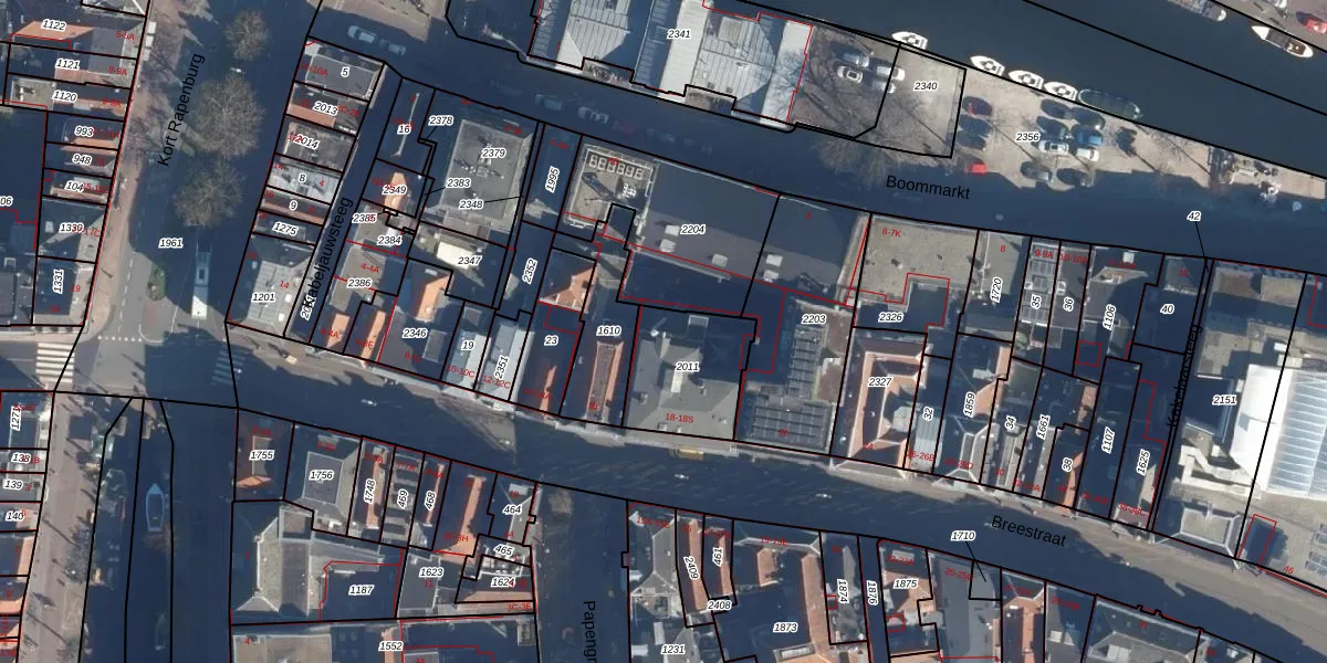 Het perceel waarop Breestraat 18-M staat heeft een oppervlakte van 324 m². Dit is een groot perceel. De perceeloppervlakte wordt geregistreerd door het Kadaster. Gedetailleerde informatie over de maten van dit perceel kunt u vinden in het rapport Kadastrale kaart met maatvoering van Breestraat 18-M.