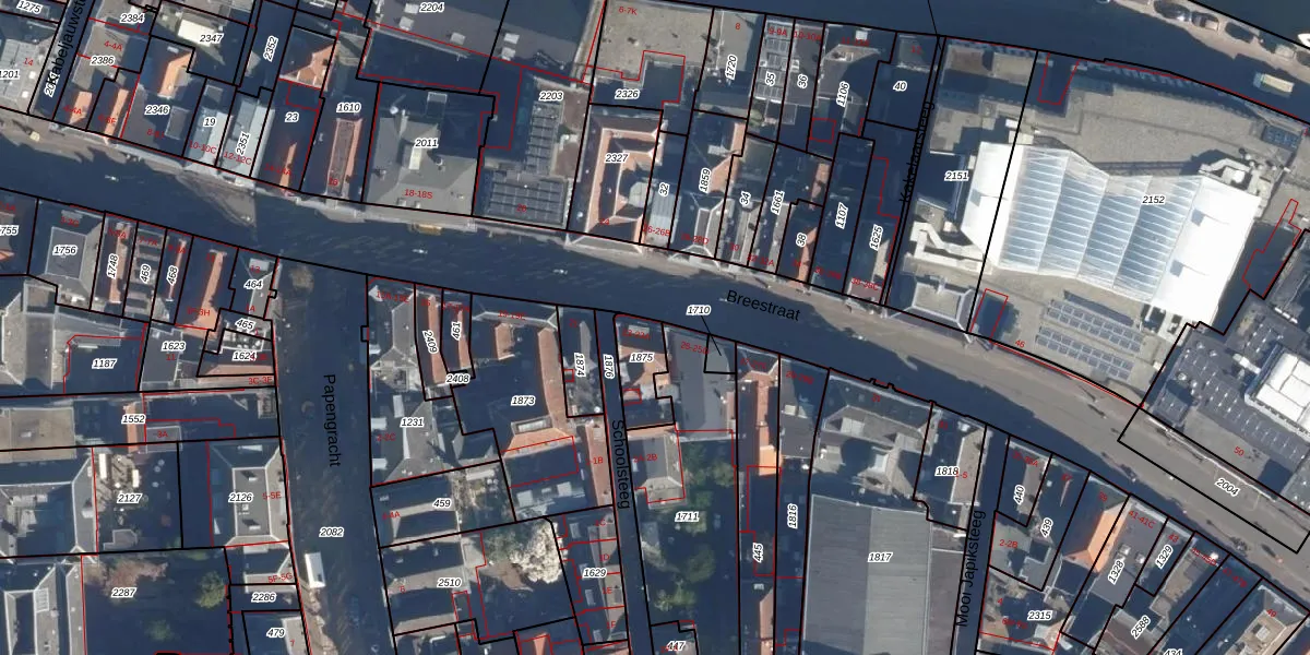 Het perceel waarop Breestraat 23 staat heeft een oppervlakte van 118 m². Dit is een middelgroot perceel. De perceeloppervlakte wordt geregistreerd door het Kadaster. Gedetailleerde informatie over de maten van dit perceel kunt u vinden in het rapport Kadastrale kaart met maatvoering van Breestraat 23.