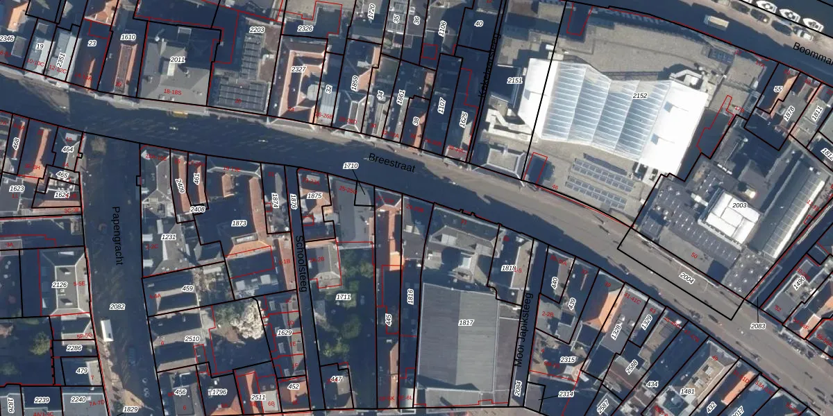 Het perceel waarop Breestraat 29-A staat heeft een oppervlakte van 241 m². Dit is een middelgroot perceel. De perceeloppervlakte wordt geregistreerd door het Kadaster. Gedetailleerde informatie over de maten van dit perceel kunt u vinden in het rapport Kadastrale kaart met maatvoering van Breestraat 29-A.