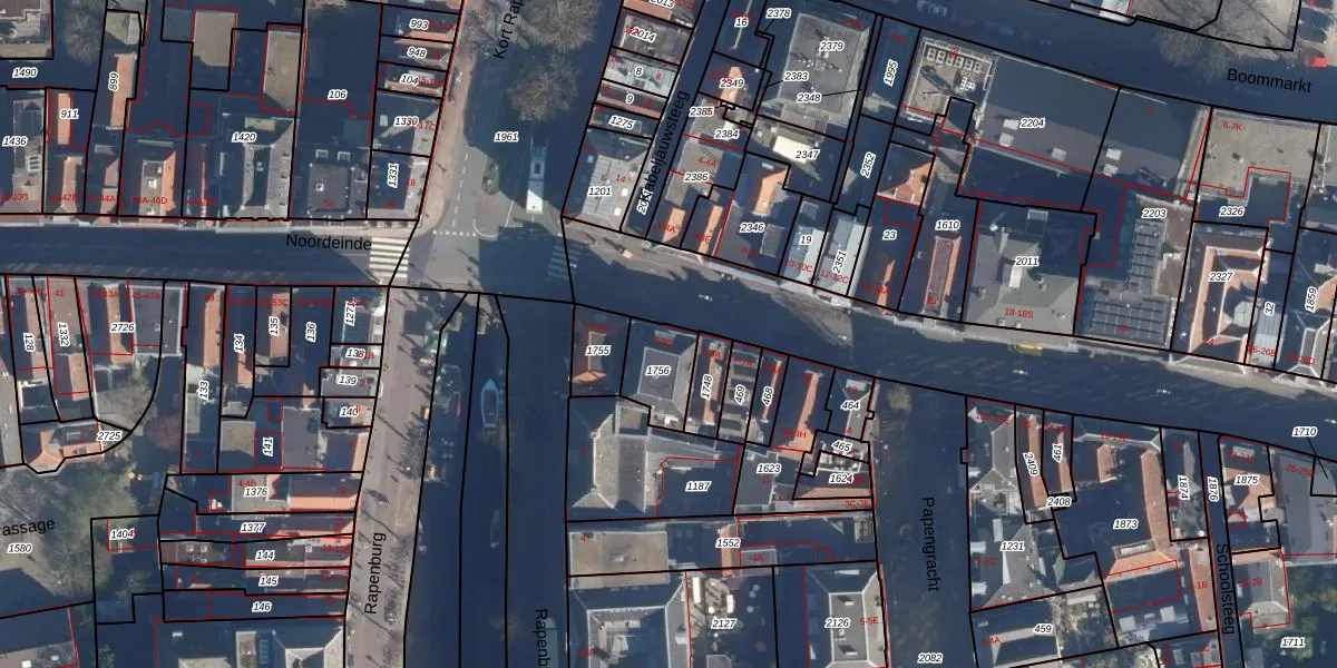 Het adres is gelegen op perceel 1756 in de sectie G en de kadastrale gemeente Leiden. De kadastrale aanduiding is aldus LDN01-G-1756. Het perceel is kleiner dan gemiddeld in Leiden. Het perceel is 134 m² groot, terwijl het gemiddelde ligt op 703,94 m². Het kleinste perceel in de kadastrale gemeente is 0 m² groot. De grootste perceeloppervlakte is 51,8 ha. Er zijn 8 adressen aanwezig op het perceel. De huidige grenzen van het perceel zijn digitaal in de Basisregistratie Kadaster (BRK) geregistreerd op 22-06-1998.