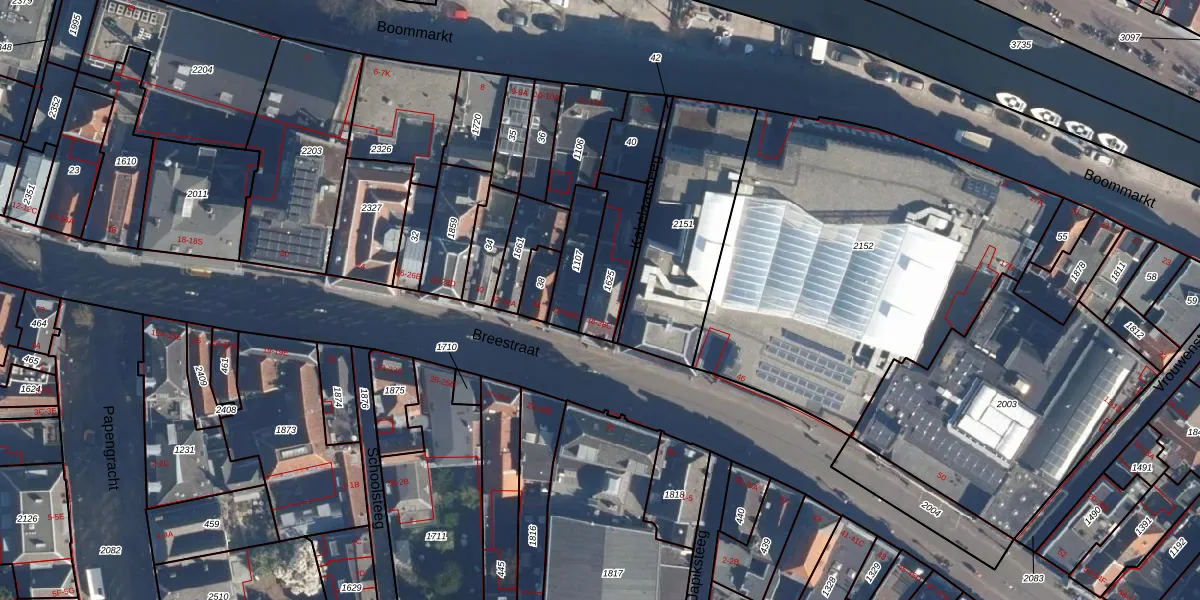 Het perceel waarop Breestraat 38-C staat heeft een oppervlakte van 166 m². Dit is een middelgroot perceel. De perceeloppervlakte wordt geregistreerd door het Kadaster. Gedetailleerde informatie over de maten van dit perceel kunt u vinden in het rapport Kadastrale kaart met maatvoering van Breestraat 38-C.