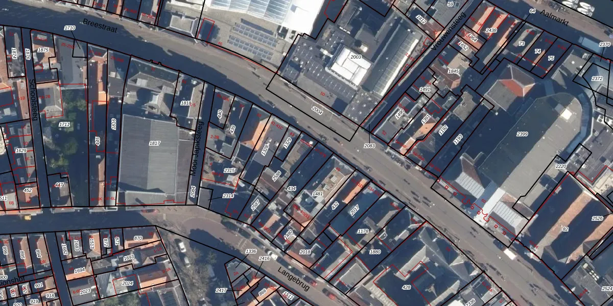 Het perceel waarop Breestraat 45-C staat heeft een oppervlakte van 154 m². Dit is een middelgroot perceel. De perceeloppervlakte wordt geregistreerd door het Kadaster. Gedetailleerde informatie over de maten van dit perceel kunt u vinden in het rapport Kadastrale kaart met maatvoering van Breestraat 45-C.