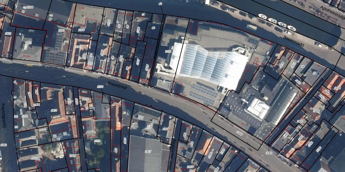 Het perceel waarop Breestraat 46 staat heeft een oppervlakte van 561 m². Dit is een groot perceel. De perceeloppervlakte wordt geregistreerd door het Kadaster. Gedetailleerde informatie over de maten van dit perceel kunt u vinden in het rapport Kadastrale kaart met maatvoering van Breestraat 46.