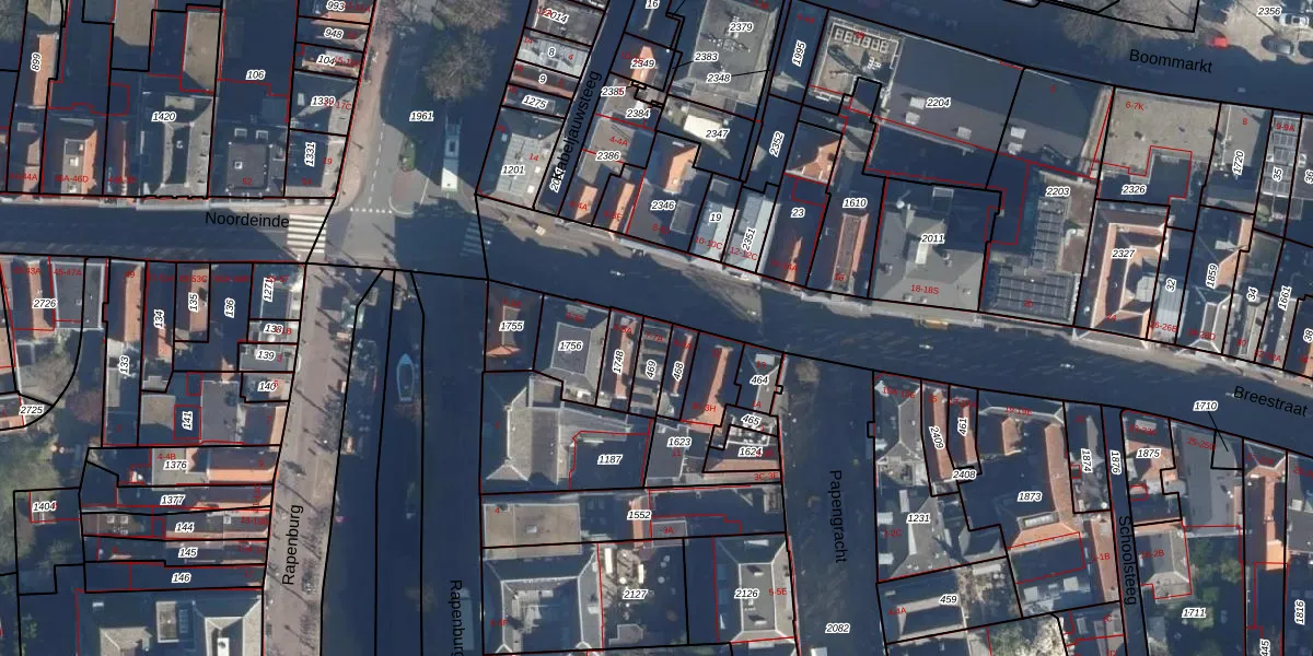 Het perceel waarop Breestraat 7 staat heeft een oppervlakte van 65 m². Dit is een klein perceel. De perceeloppervlakte wordt geregistreerd door het Kadaster. Gedetailleerde informatie over de maten van dit perceel kunt u vinden in het rapport Kadastrale kaart met maatvoering van Breestraat 7.
