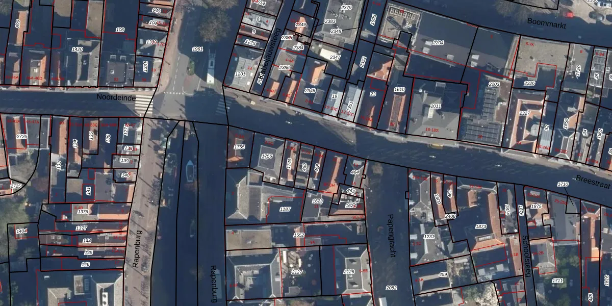 Het perceel waarop Breestraat 7-A staat heeft een oppervlakte van 65 m². Dit is een klein perceel. De perceeloppervlakte wordt geregistreerd door het Kadaster. Gedetailleerde informatie over de maten van dit perceel kunt u vinden in het rapport Kadastrale kaart met maatvoering van Breestraat 7-A.