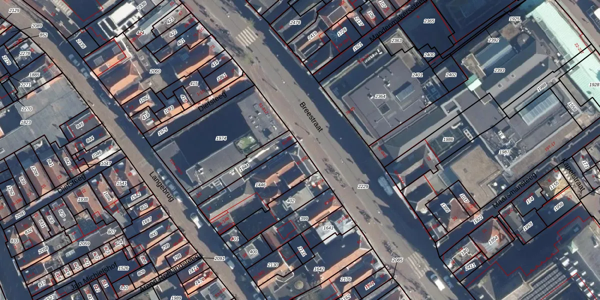 Het perceel waarop Breestraat 85-C staat heeft een oppervlakte van 479 m². Dit is een groot perceel. De perceeloppervlakte wordt geregistreerd door het Kadaster. Gedetailleerde informatie over de maten van dit perceel kunt u vinden in het rapport Kadastrale kaart met maatvoering van Breestraat 85-C.