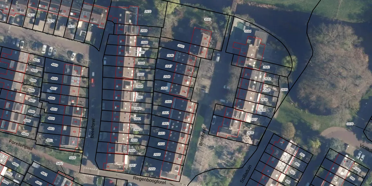 Het perceel waarop Bronforel 16 staat heeft een oppervlakte van 141 m². Dit is een middelgroot perceel. De perceeloppervlakte wordt geregistreerd door het Kadaster. Gedetailleerde informatie over de maten van dit perceel kunt u vinden in het rapport Kadastrale kaart met maatvoering van Bronforel 16.