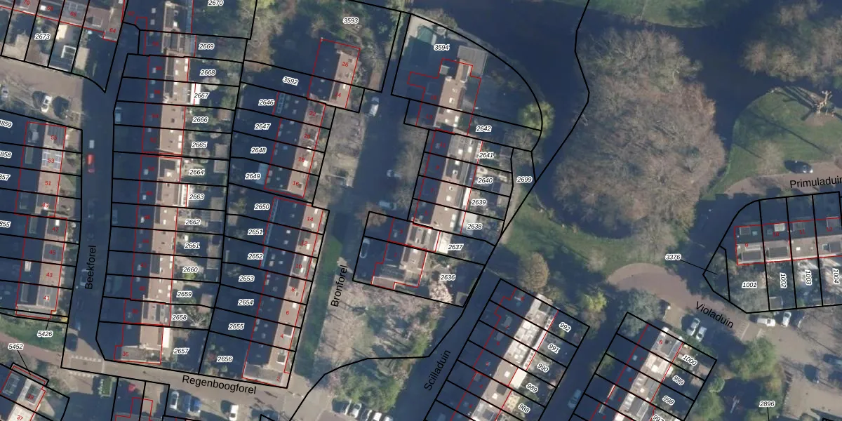 Gebruik de zoekbalk of klik op een perceel voor informatie over de adressen binnen dit perceel.